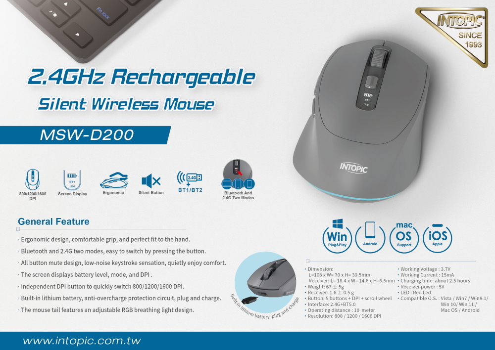 ▶Bluetooth and 2.4G two modes, easy to switch by pressing the button.