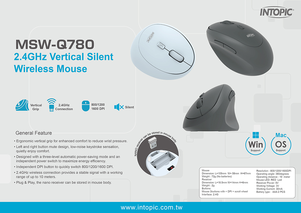 ▶Ergonomic vertical grip for enhanced comfort and reduced wrist pressure.