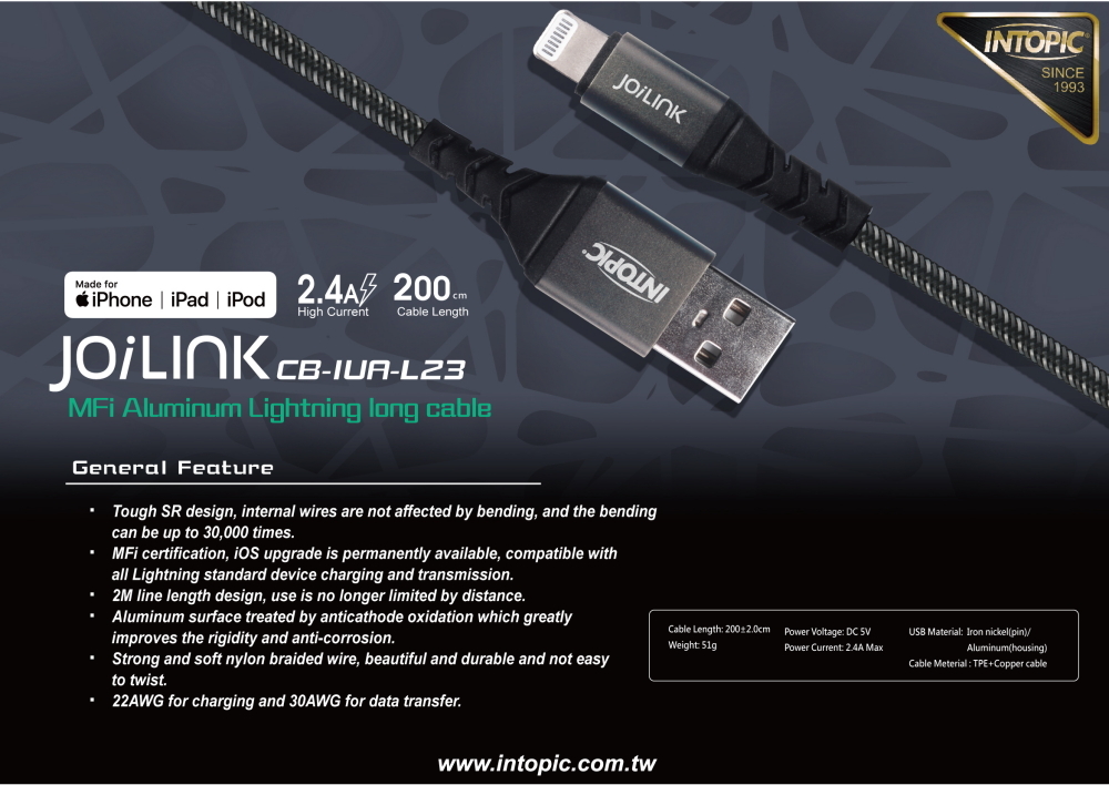 MFI certification, IOS upgrade is permanently available, compatible with all Lightning standard device charging and transmission