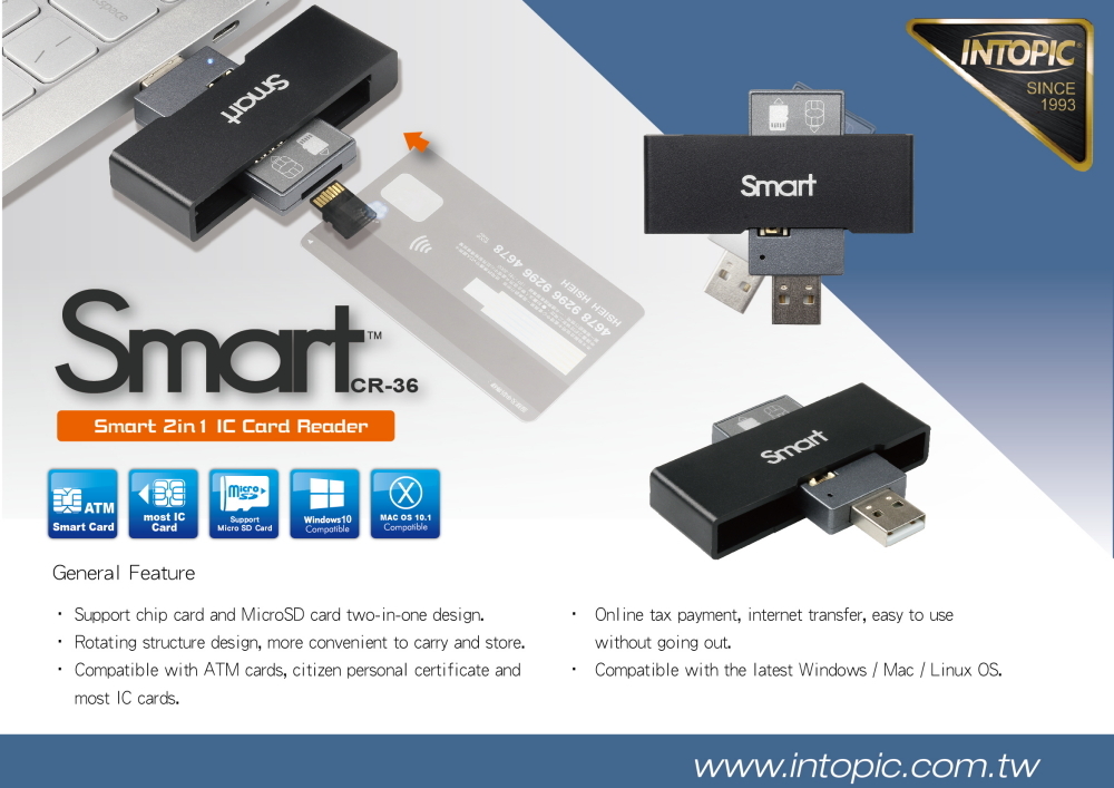 Compatible with ATM cards, citizen personal certificate and most IC cards.