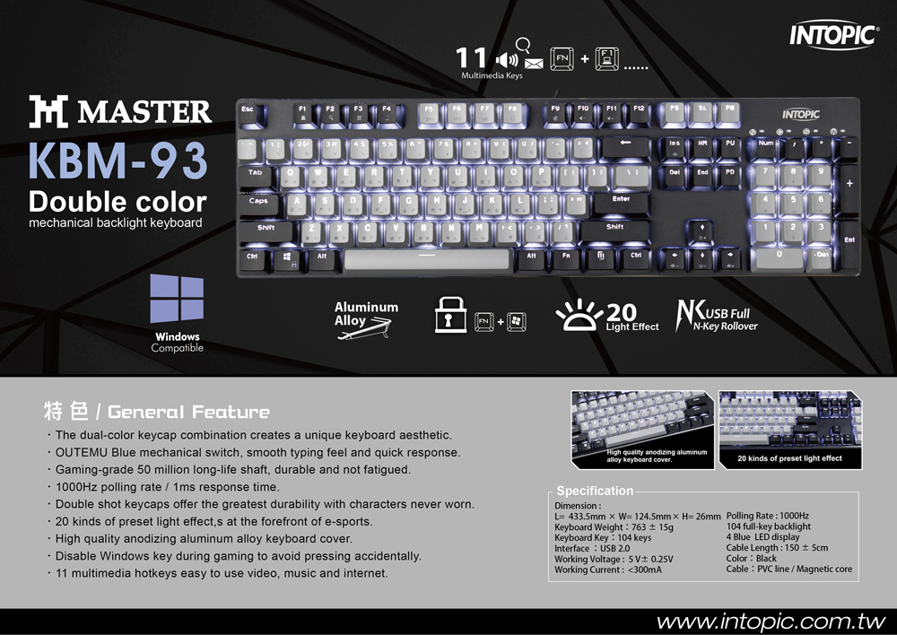 ▶OUTEMU Blue mechanical switch, smooth feel and quick response.