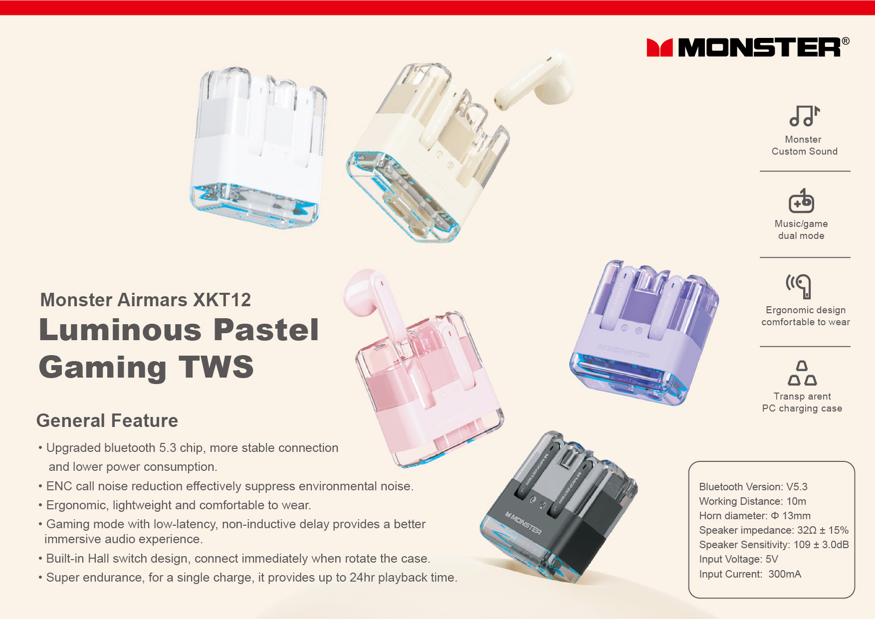 Bluetooth 5.3 version, with stable signals reaching up to 10 meters.