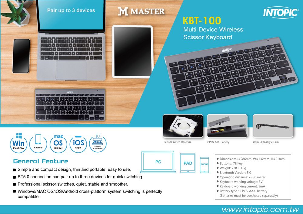 Professional scissor foot balance structure keys, quiet, stable and smoother.