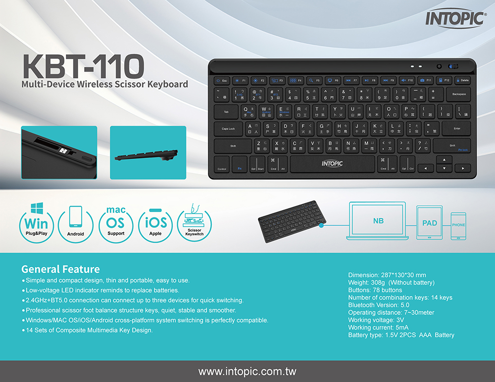 ▶2.4GHz+BT5.0 connection can connect up to three devices for quick switching.