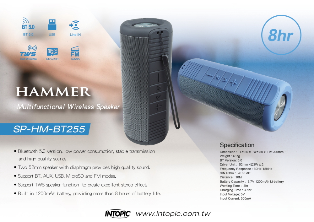 Bluetooth 5.0 version, low power consumption, stable transmission and high quality sound.