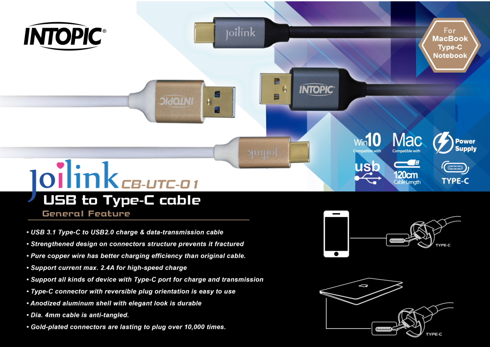 ▶USB 3.1 Type-C to USB2.0 charge & data-transmission cable