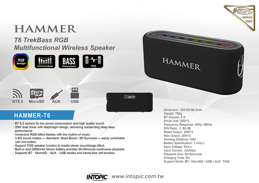 ▶20W dual driver with diaphragm design, delivering outstanding deep bass performance.