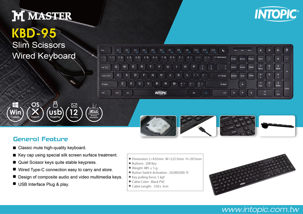 Professional scissor foot balance structure keys, quiet, stable and smoother.