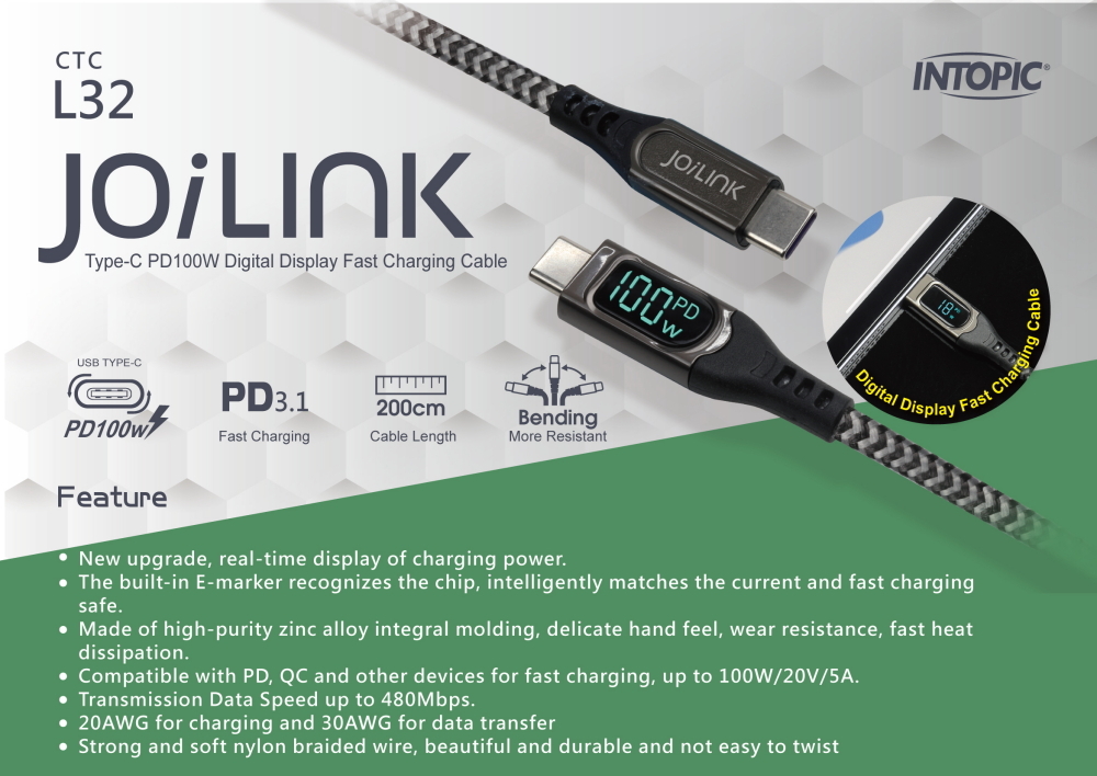 ▶New upgrade, Real-time Digital Watt Display charging cable.
