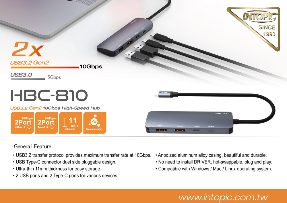 ▶USB3.2 transfer protocol provides maximum transfer rate at 10Gbps.