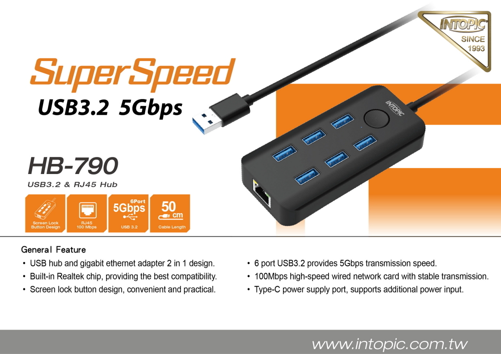 ▶USB hub and gigabit ethernet adapter 2 in 1 design.