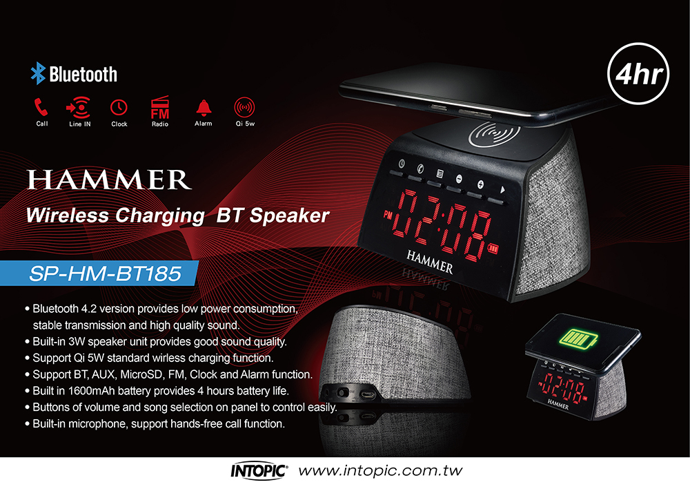 ▶Support BT, AUX, MicroSD, FM, Clock and Alarm function.