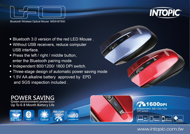 ▶Press DPI button for 3 seconds,enter the Bluetooth pairing mode