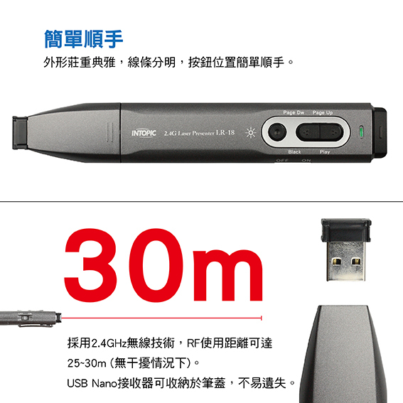 ▶採用2.4GHz無線技術 與 高亮度紅色鐳射光設計