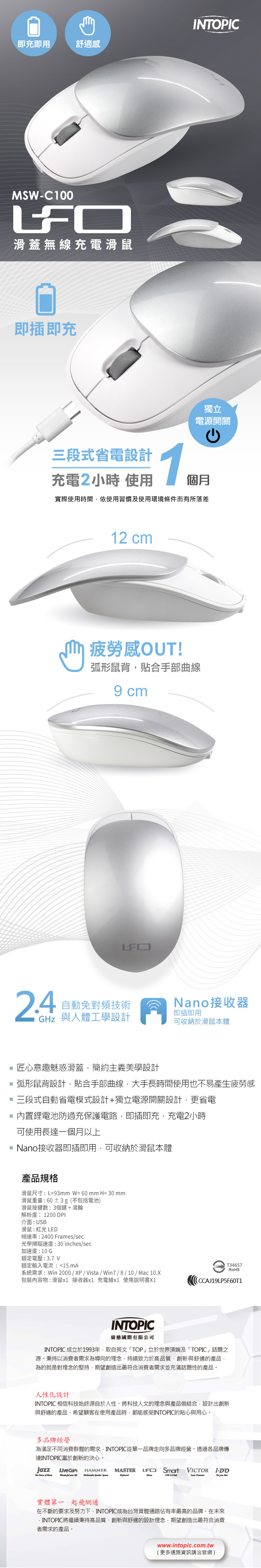 ▶Nano接收器即插即用,可收納於滑鼠本體