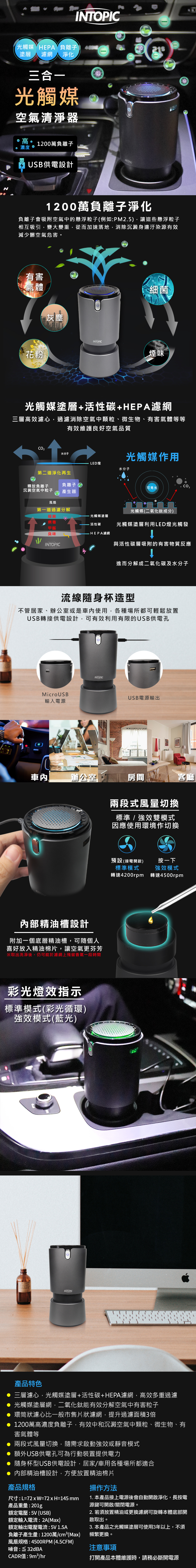 ▶1200萬高濃度負離子,有效中和沉澱空氣中顆粒、微生物、有毒氣體等