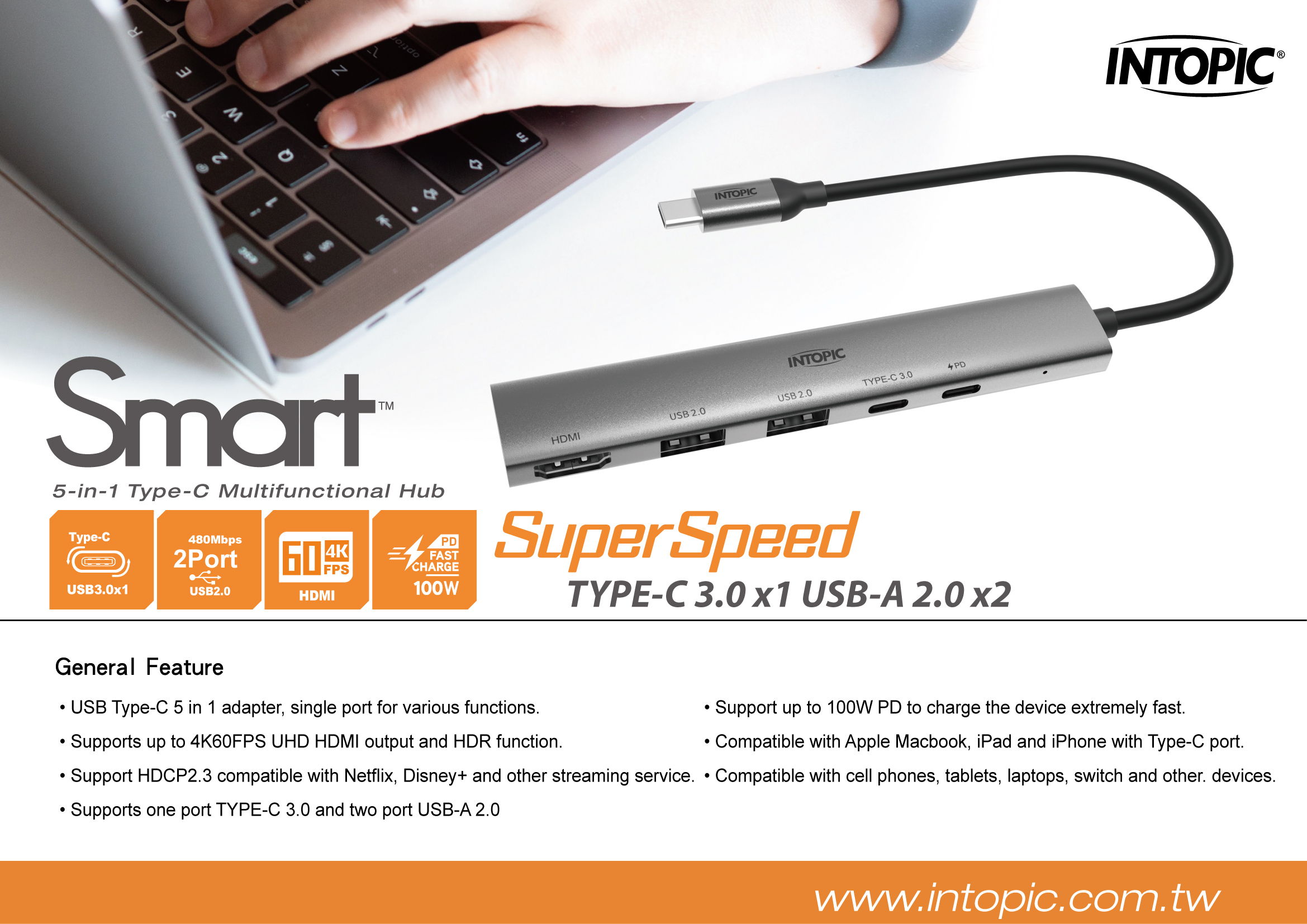 Supports one hole TYPE-C 3.0 and two holes USB-A 2.0.