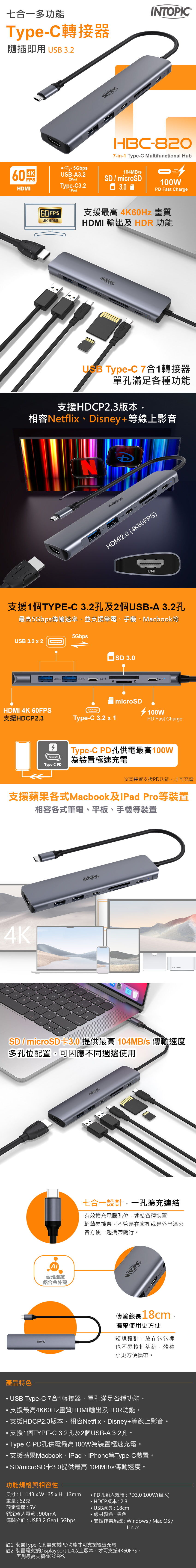 ▶USB Type-C 7合1轉接器,單孔滿足各種功能
