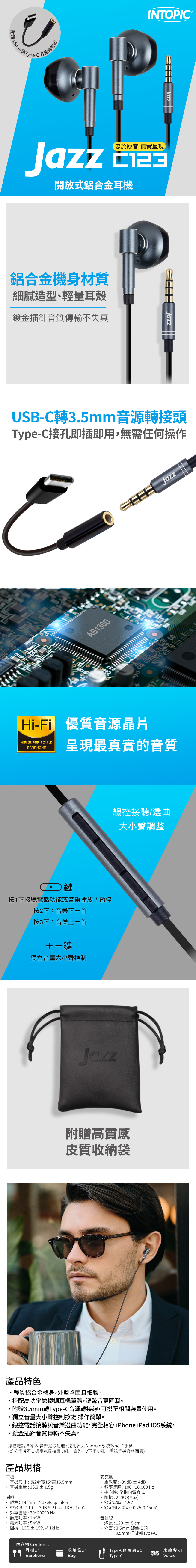 ▶附贈3.5mm轉Type-C音源轉接線,可搭配相關裝置使用
