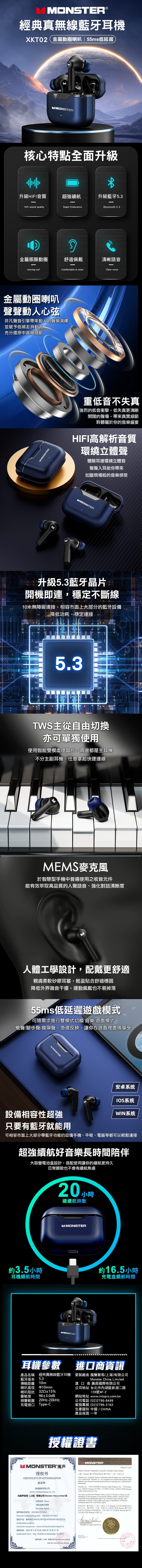 ▶超長續航力,單次充電可提供長達20小時的播放時間。