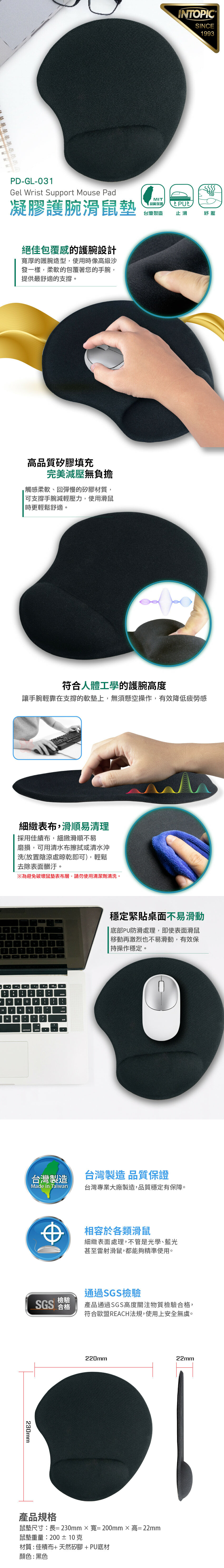 ▶使用高品質減壓凝膠材質,大幅減輕長時間使用滑鼠的所造成的負擔。