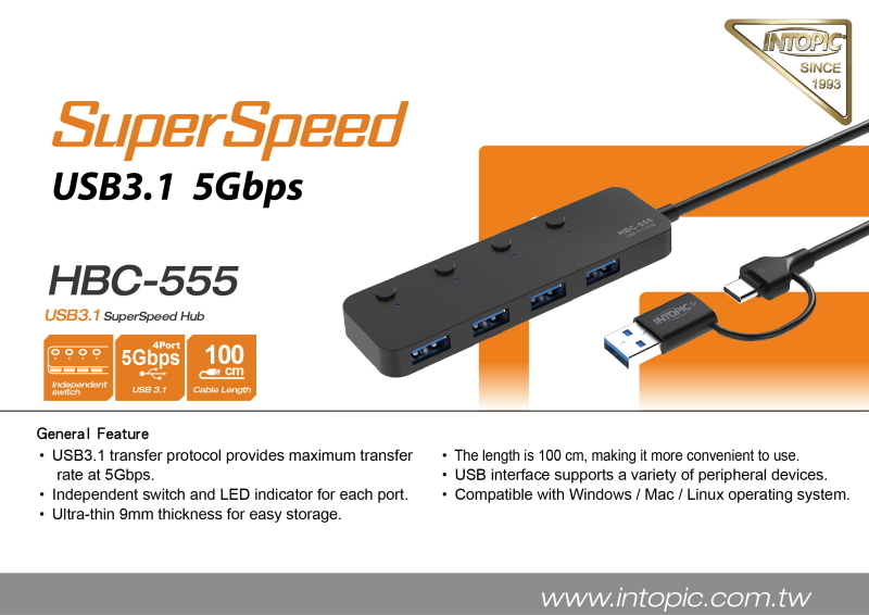 ▶ USB 3.1 transfer protocol with up to 5Gbps speed