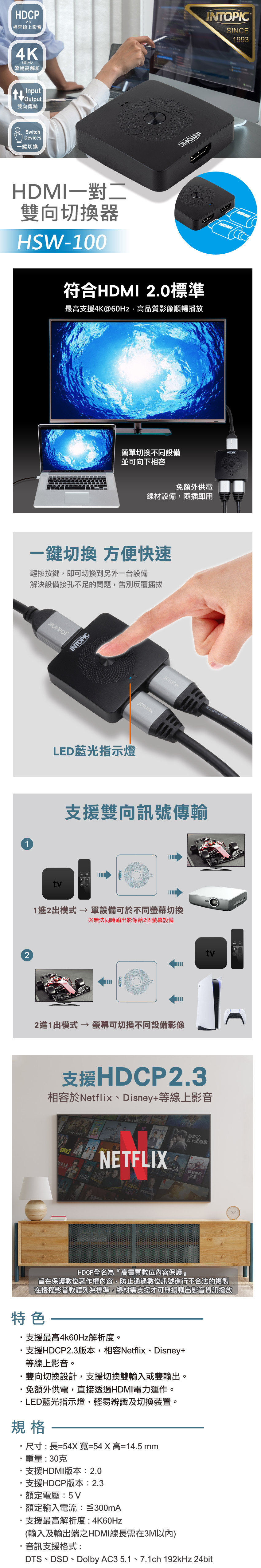 ▶支援HDCP2.3版本,相容Netflix、Disney+等線上影音