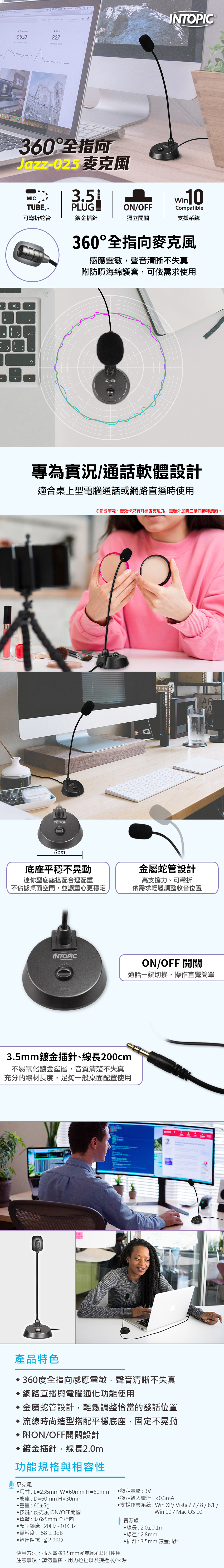 ▶360∘全指向感應靈敏,聲音清晰不失真。