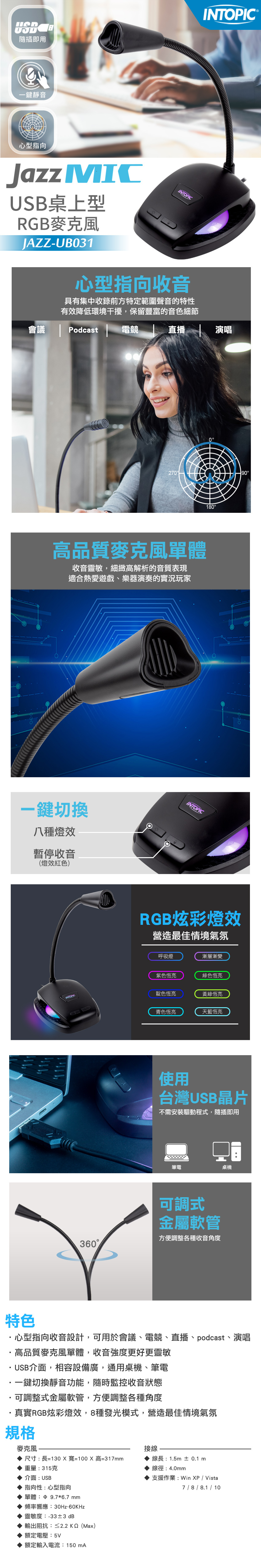 ▶心型指向收音設計,可用於會議、電競、直播、podcast、演唱。