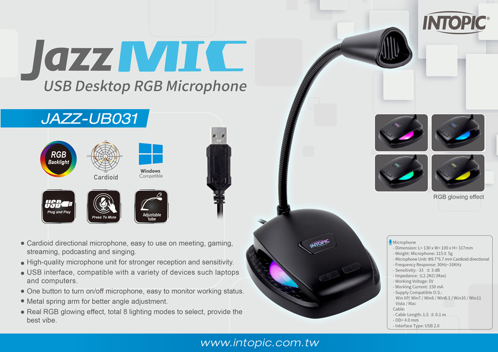 Cardioid directional microphone, easy to use on meeting, gaming, streaming, podcasting and singing.