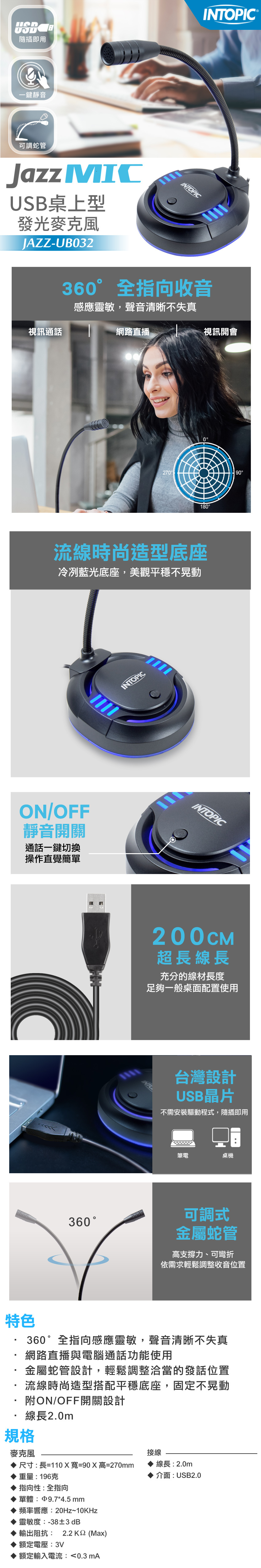 ▶360∘全指向感應靈敏,聲音清晰不失真。