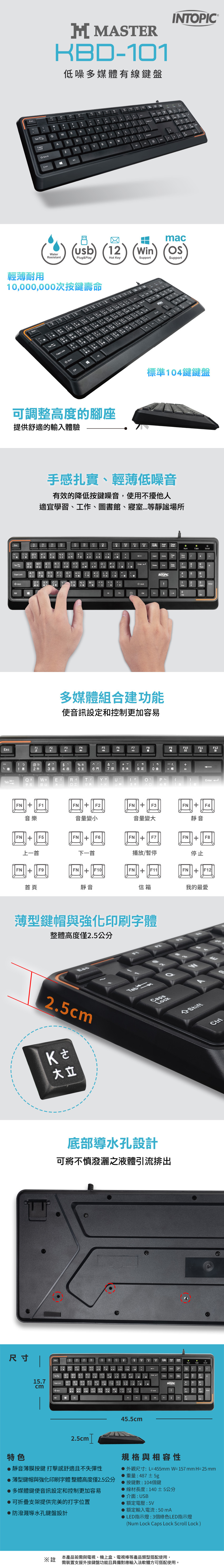 ▶薄型鍵帽與強化印刷字體,整體高度僅2.5公分,收納一級棒