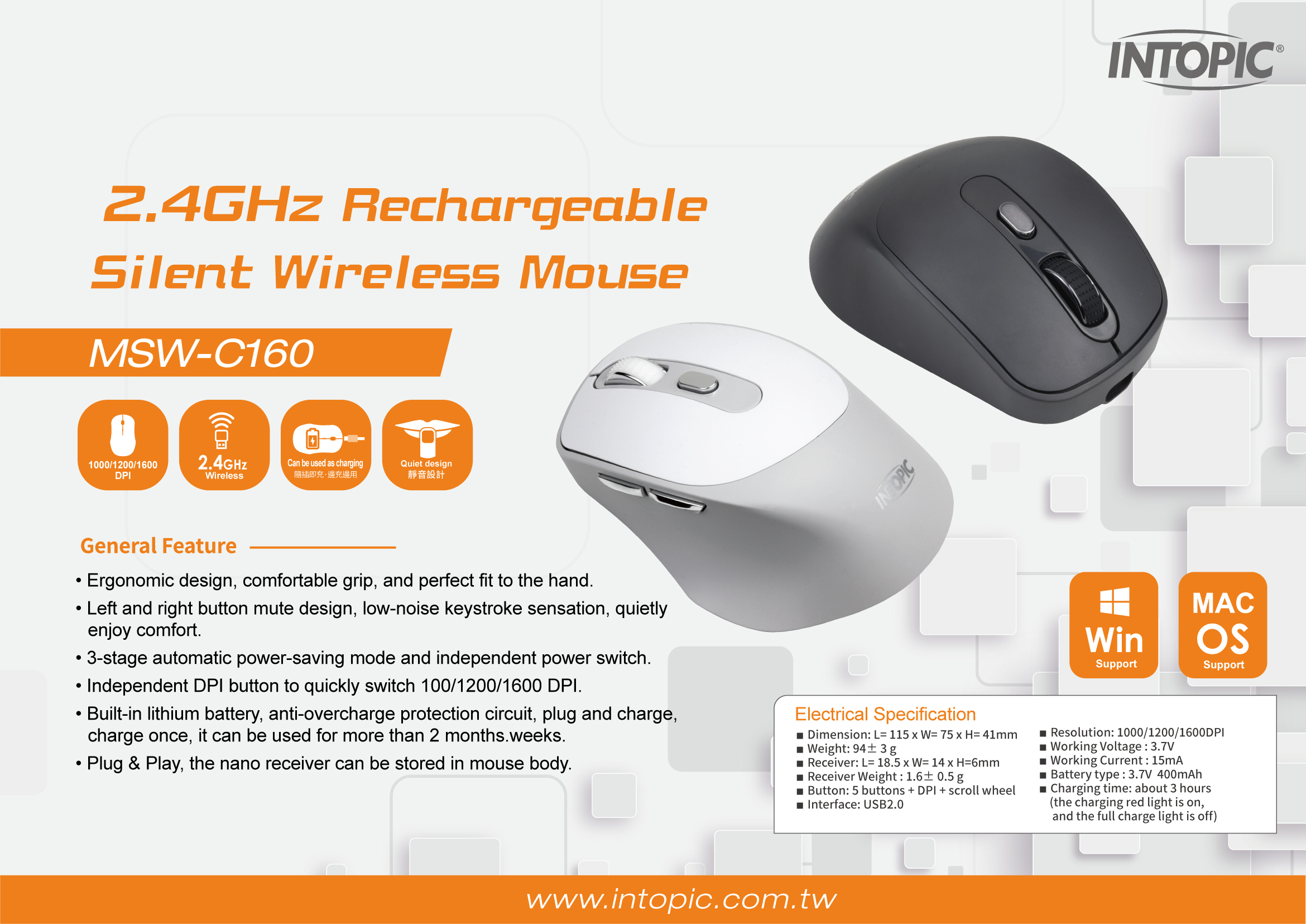 ▶可快速切換的獨立DPI按鍵,1000/1200/1600 三段式DPI切換