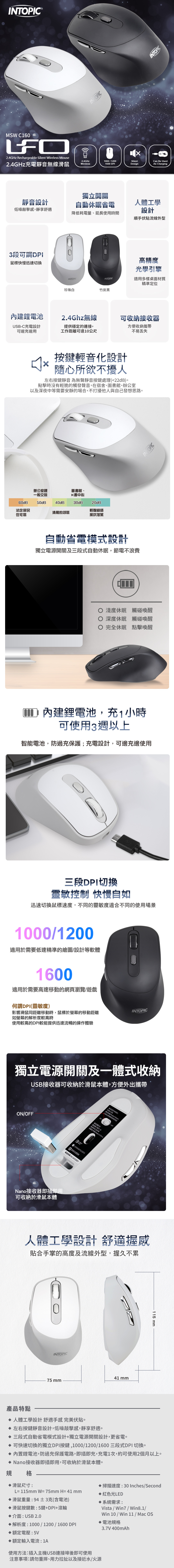 ▶Nano接收器即插即用,可收納於滑鼠本體
