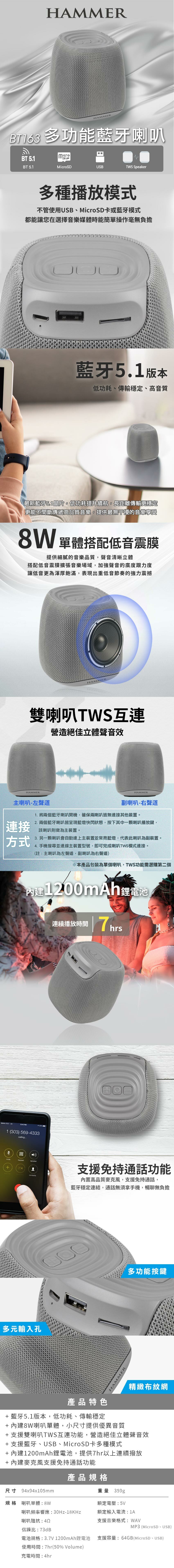 ▶內建1200mAh鋰電池,提供7hr以上連續撥放