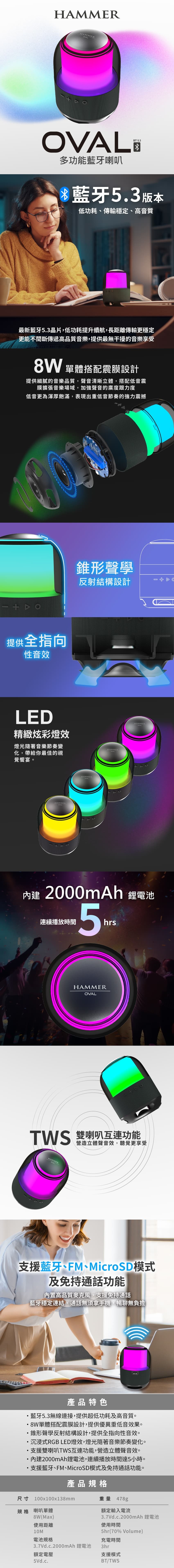 ▶藍牙5.3無線連接,提供超低功耗及高音質