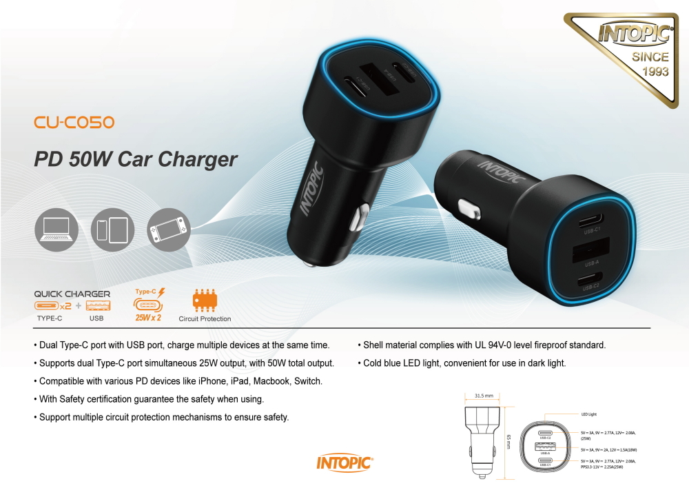 Supports dual Type-C port simultaneous 25W output, with 50W total output.