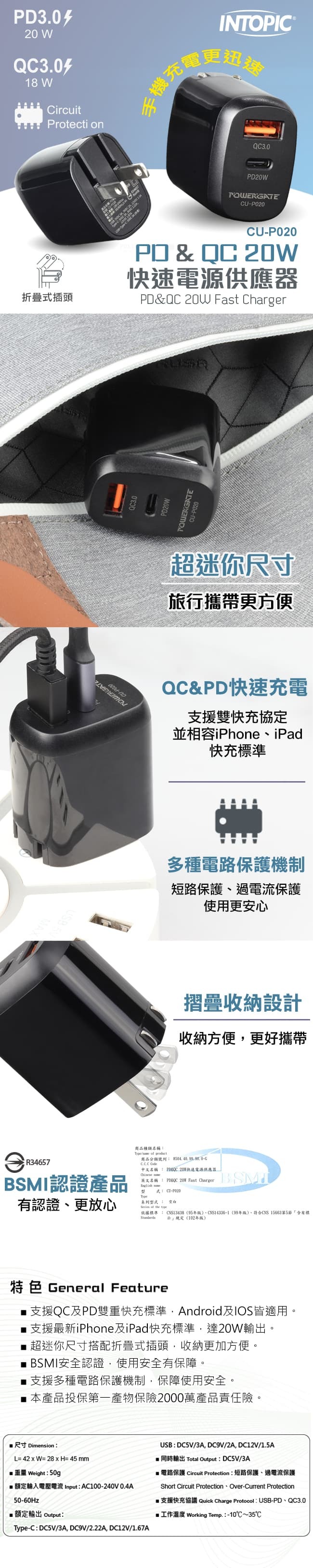 ▶支援QC及PD雙重快充標準,Android及IOS皆適用