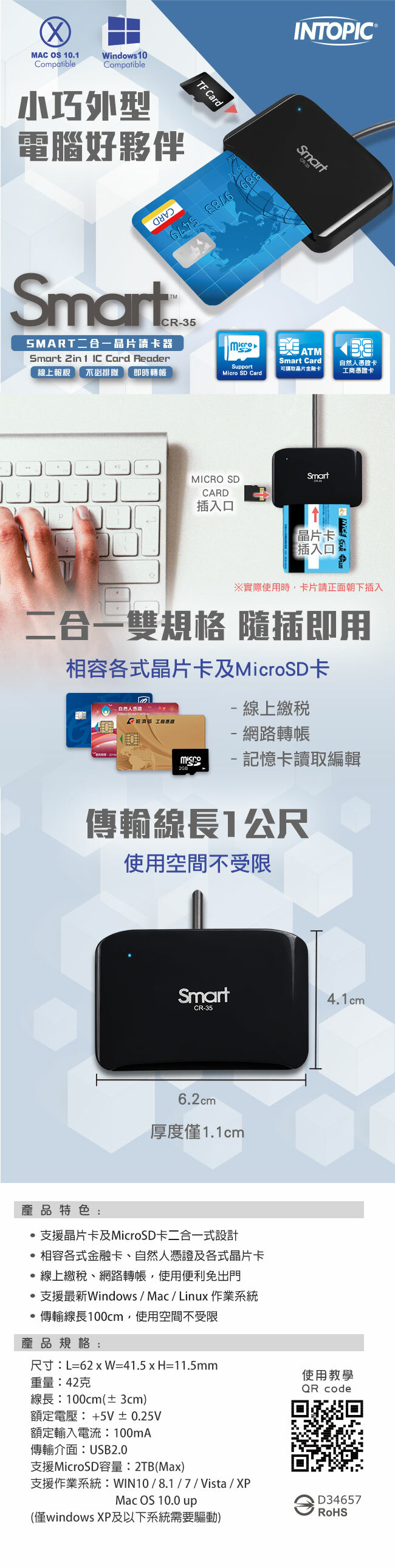 ▶相容各式金融卡、自然人憑證及各式晶片卡。