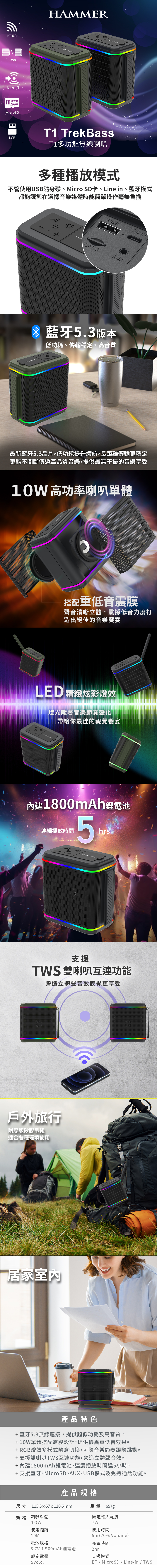 ▶支援雙喇叭TWS互連功能,營造立體聲音效。