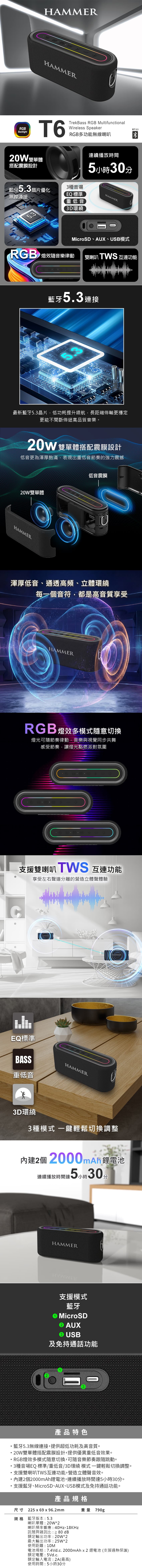 ▶支援藍牙、MicroSD、AUX、USB模式及免持通話功能。