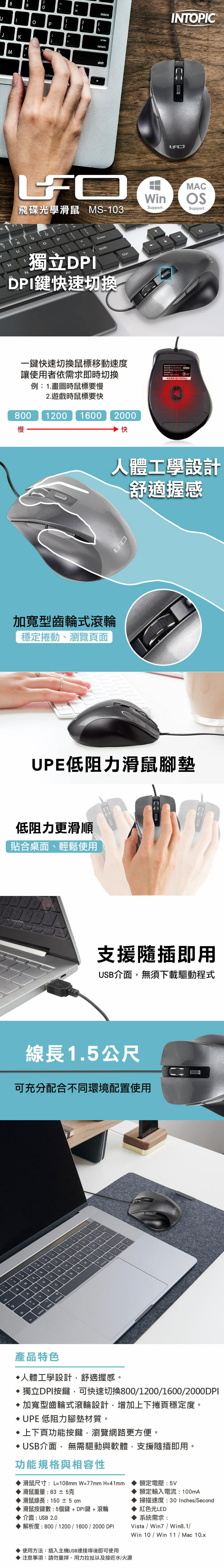 ▶獨立DPI按鍵,可快速切換800/1200/1600/2000DPI