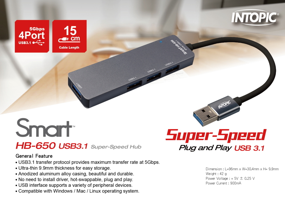 ▶USB3.1 transfer protocol provides maximum transfer rate at 5Gbps.