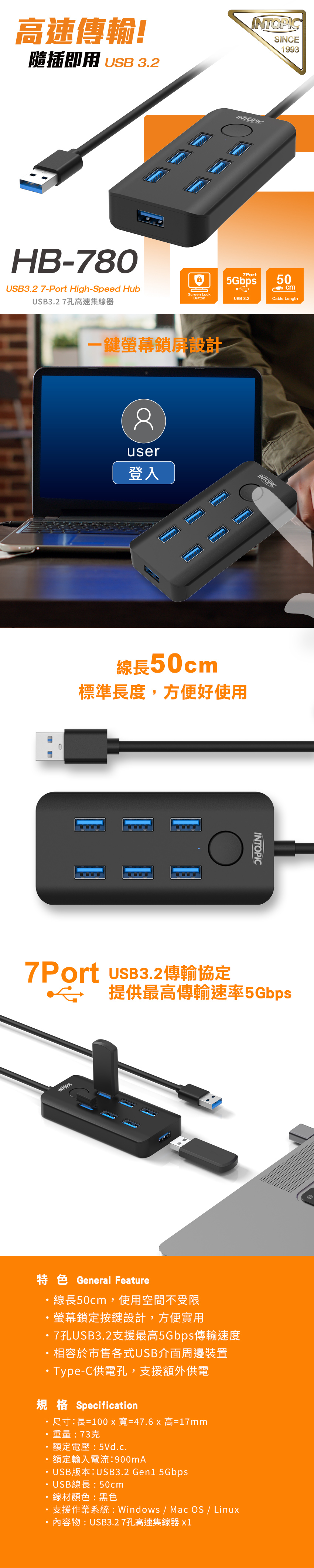 ▶7孔USB3.2支援最高5Gbps傳輸速度。
