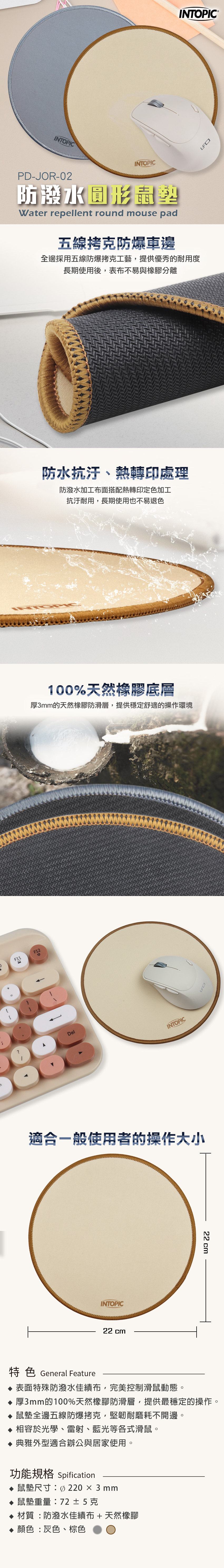 ▶鼠墊全邊五線防爆拷克,堅韌耐磨耗不開邊